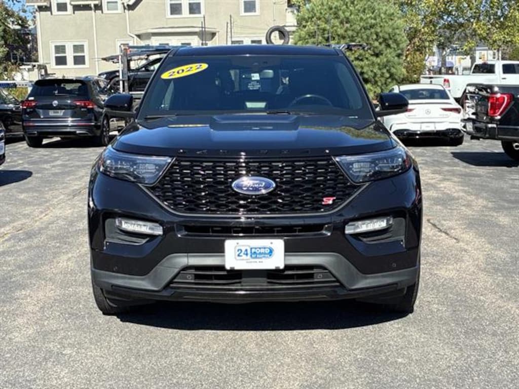 CARFAX One-Owner Clean CARFAX All-Weather Floor Liners with Front and Rear Carpet Floor Mats, Cargo Area Management System, Dual Panel Moonroof, Dual-Headrest Rear Seat Entertainment System, Equipment Group 401A, Ford Co-Pilot360 Assist+, Front License Plate Bracket, Hands Free Liftgate Delete Credit, Premium Technology Package w/o Multi-Contour Seats, Second Row Climate Control Credit, Second Row Heated Seat Credit, ST Street Pack Experience the thrill of the 2022 Ford Explorer AWD ST, finished in sleek Black with performance and style to match. Powered by a robust EcoBoost 3.0L Twin Turbo V6 engine delivering 400hp and paired with a 10-speed shiftable automatic transmission, this SUV is built for excitement and capability. Enjoy confidence on any road with AWD, Sport Tuned Suspension, and advanced safety features like Front Automatic Emergency Braking, Lane Keeping Assist, Blind Spot Monitoring, and Rear Cross Traffic Alert. The cabin is loaded with luxury touches: leather-trimmed upholstery, heated and ventilated front seats, heated steering wheel, Dual Panel Moonroof, and a Premium Technology Package featuring a 12.3" customizable instrument cluster, SYNC infotainment, Apple CarPlay, Android Auto, Amazon Alexa, and FordPass Connect with Wi-Fi hotspot. Rear passengers get entertainment with a Dual-Headrest Rear Seat Entertainment System. Practicality meets convenience with a Power Liftgate, Class IV Trailer Hitch, third row seating, and all-weather floor liners. This Explorer ST is ready for your next adventure-don't miss out! 24 Ford of Easton is Massachusetts's Premier Family-Owned New Ford and Used Car Dealer, serving the needs of customers from South Easton to Brockton, Bridgewater to Stoughton, all the Greater Boston area, and everywhere in-between for nearly 20 years. In addition to sales, we also offer a state-of-the-art service department with all Ford Master-Certified Technicians, a Quick Lane Tire and Auto center for quick in-and-out service, and of course an outstanding Parts department. 24 Ford of Easton is your one-stop-shop for all your automotive needs. So don't hesitate. Call us now and ask to speak with one of our fully certified and customer-friendly Sales Consultants. From there, you will be able to schedule a test drive, Brake job or Oil Change of any of our 11 locations. We have New and Pre-Owned vehicles on the lot! DEALER FINANCING REQUIRED FOR ONLINE PRICE!!!