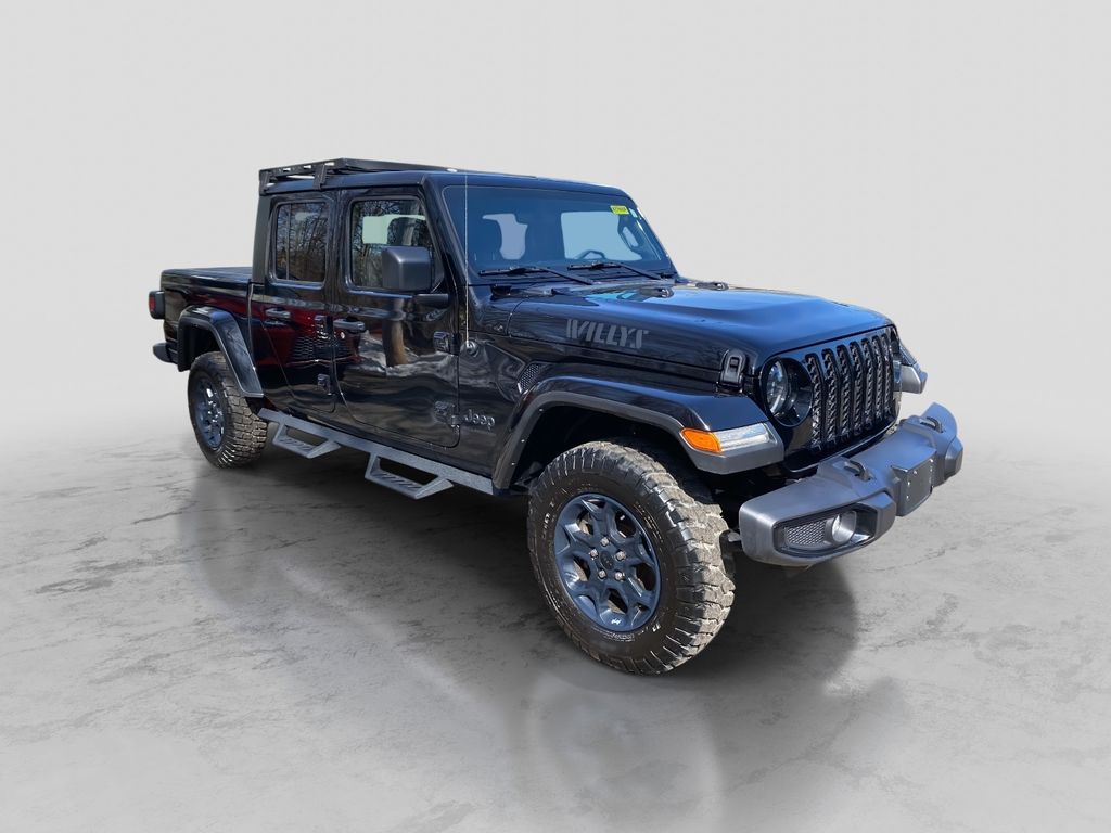 FCA US LLC Certified Pre-Owned! See Dealer for Details! Recent Arrival! Odometer is 8909 miles below market average! Our One Owner, No Accidents Reported 2023 Jeep Gladiator Willys 4X4 with LED Lighting is ready to run wild in Black! Powered by a 3.6 Liter Pentastar V6 that provides 285hp paired to an 8 Speed Automatic transmission for true truck capability. You can use that strength on the road or off, courtesy of heavy-duty Dana axles and a Trac-Lok limited-slip rear differential, and this Four Wheel Drive truck achieves nearly 22mpg on the highway. Our Gladiator also has a removable soft top for open-air freedom with our package that adds LED headlights, fog lamps, and daytime running lamps to heated power mirrors, robust skid plates, exclusive Willys graphics, cab rock rails, black alloy wheels, a 3-Piece Hard Top, a spray-on Bedliner, and a padded sport bar.