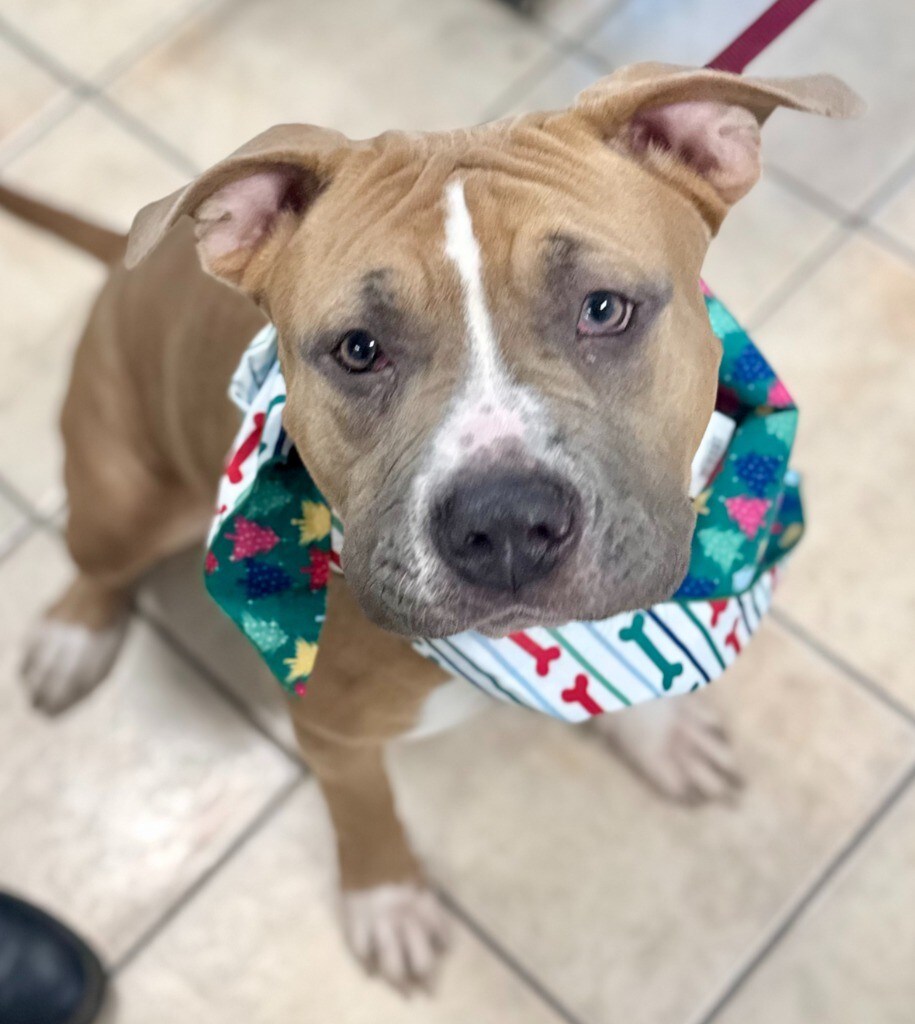 She is a boxer/American bulldog mix so, since she's a "restricted breed", you must own your own home or live in a home owned by a family member.
